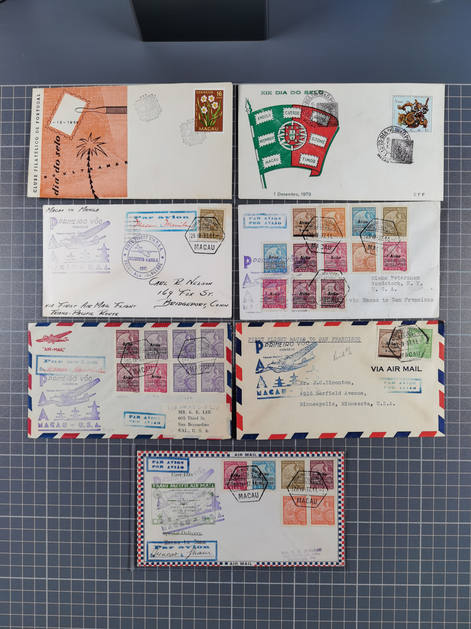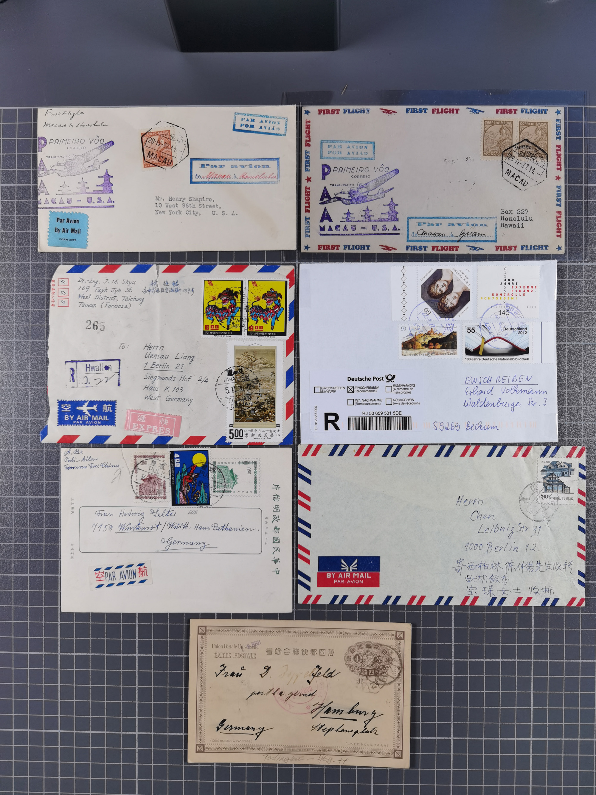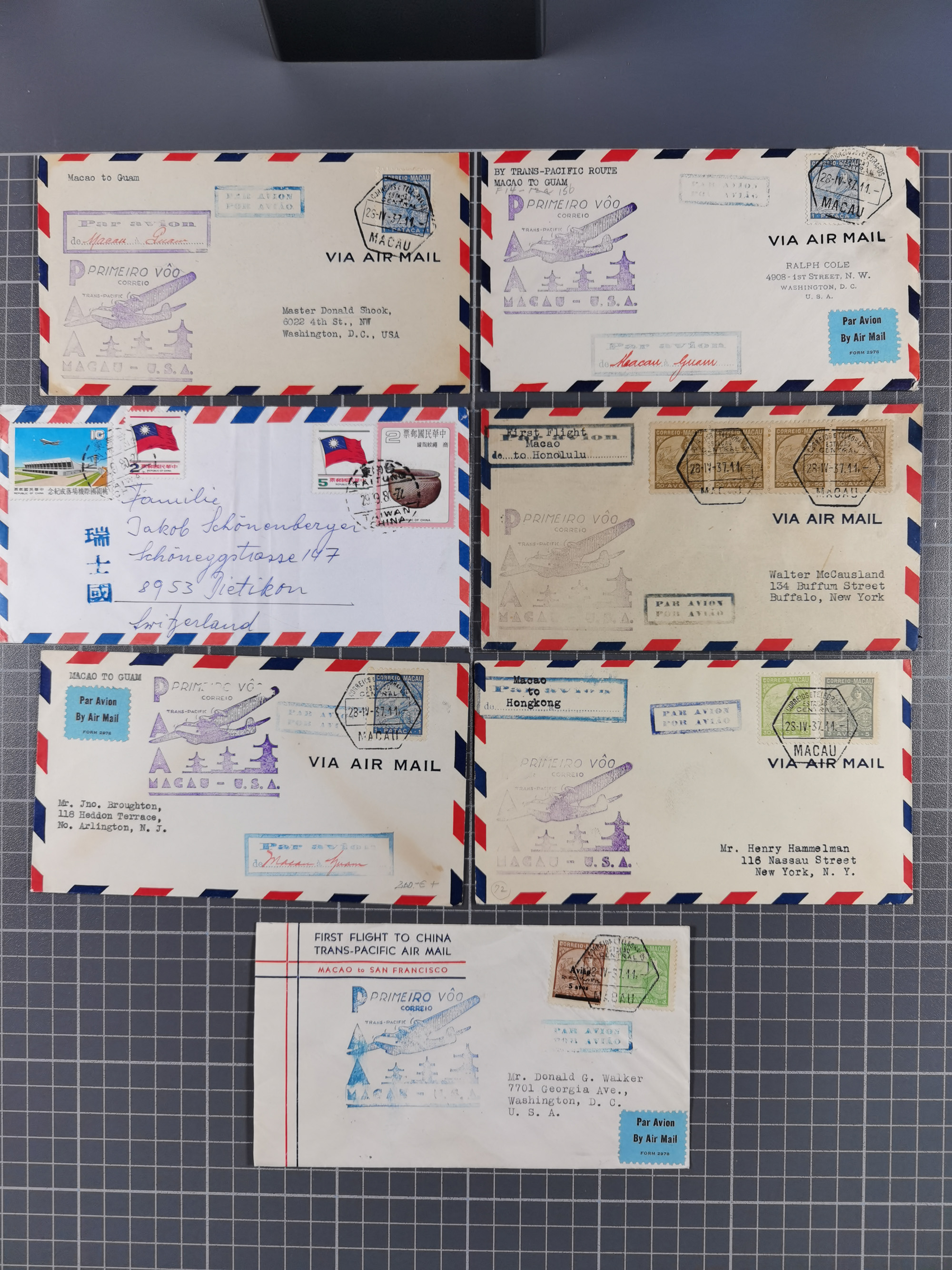 1937/2025 (ca.), Macau and taiwan accumulation of covers, noted a group of 1937 First Flights Macau-USA, etc., mostly in good condition