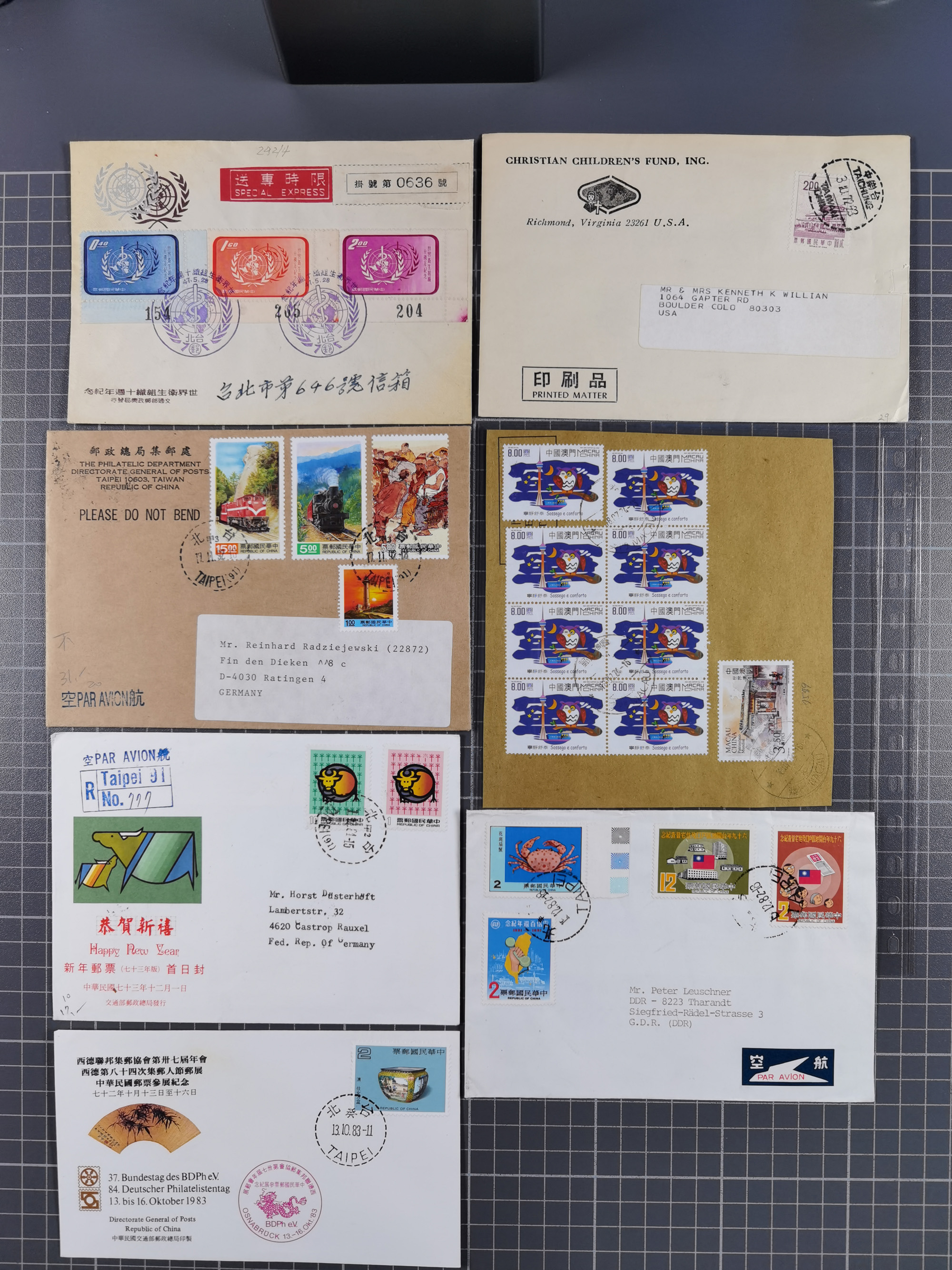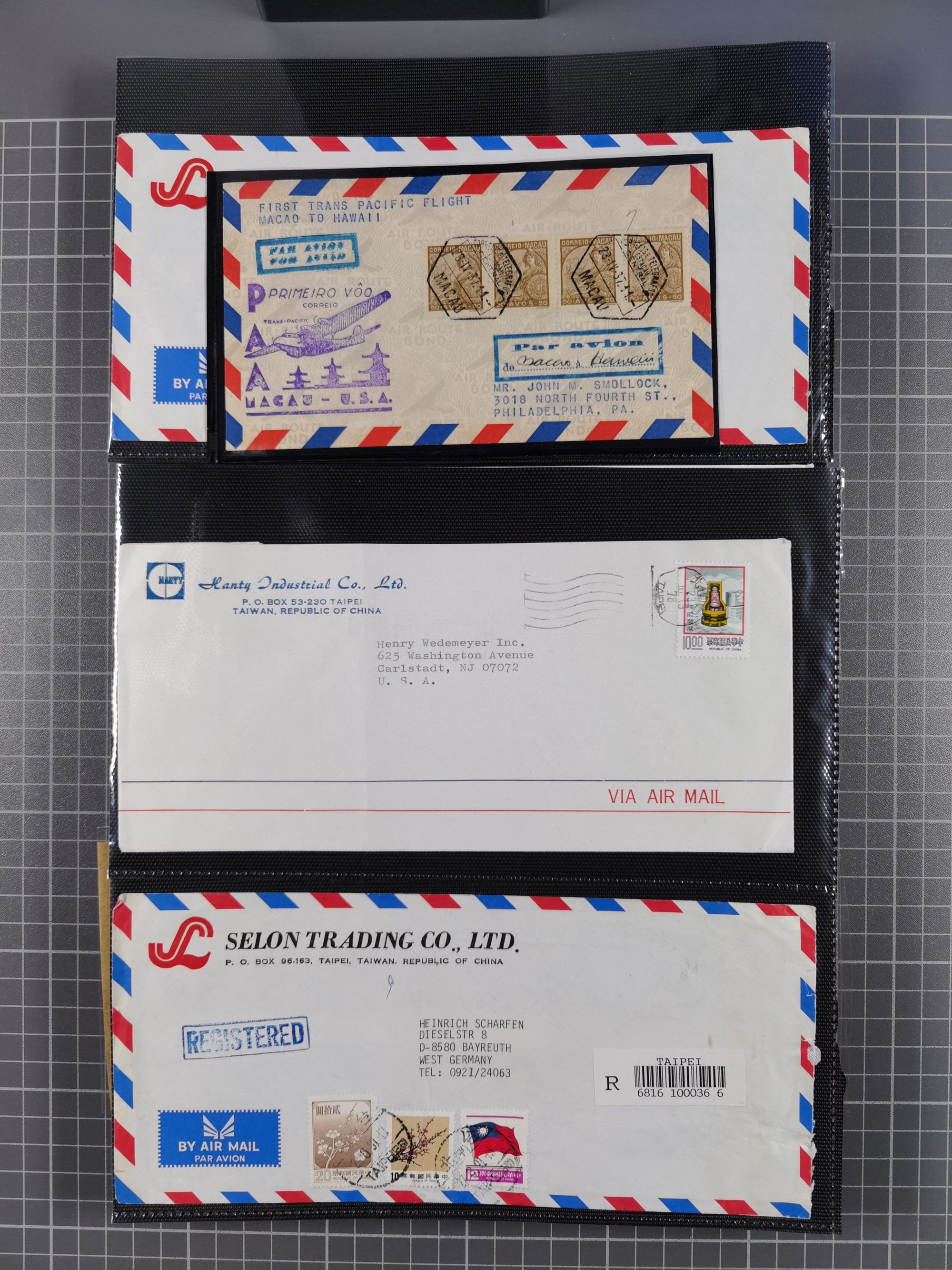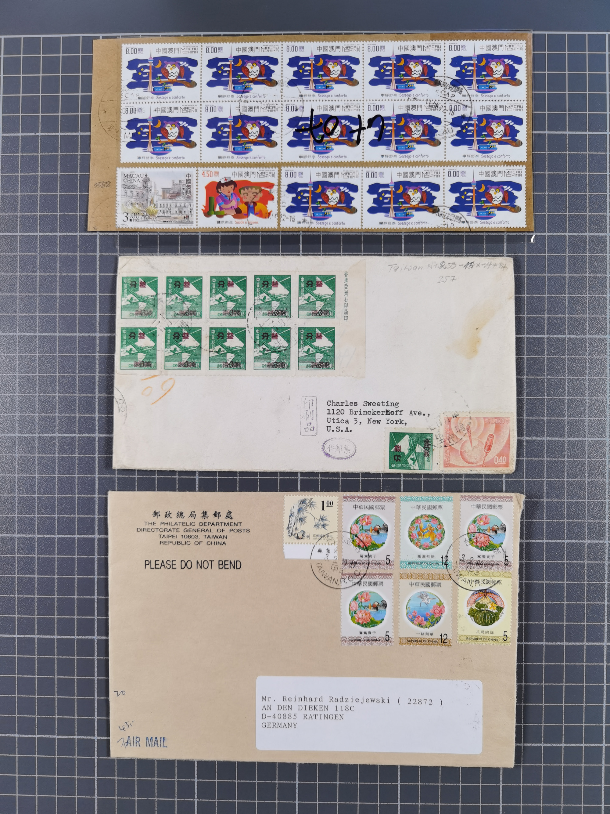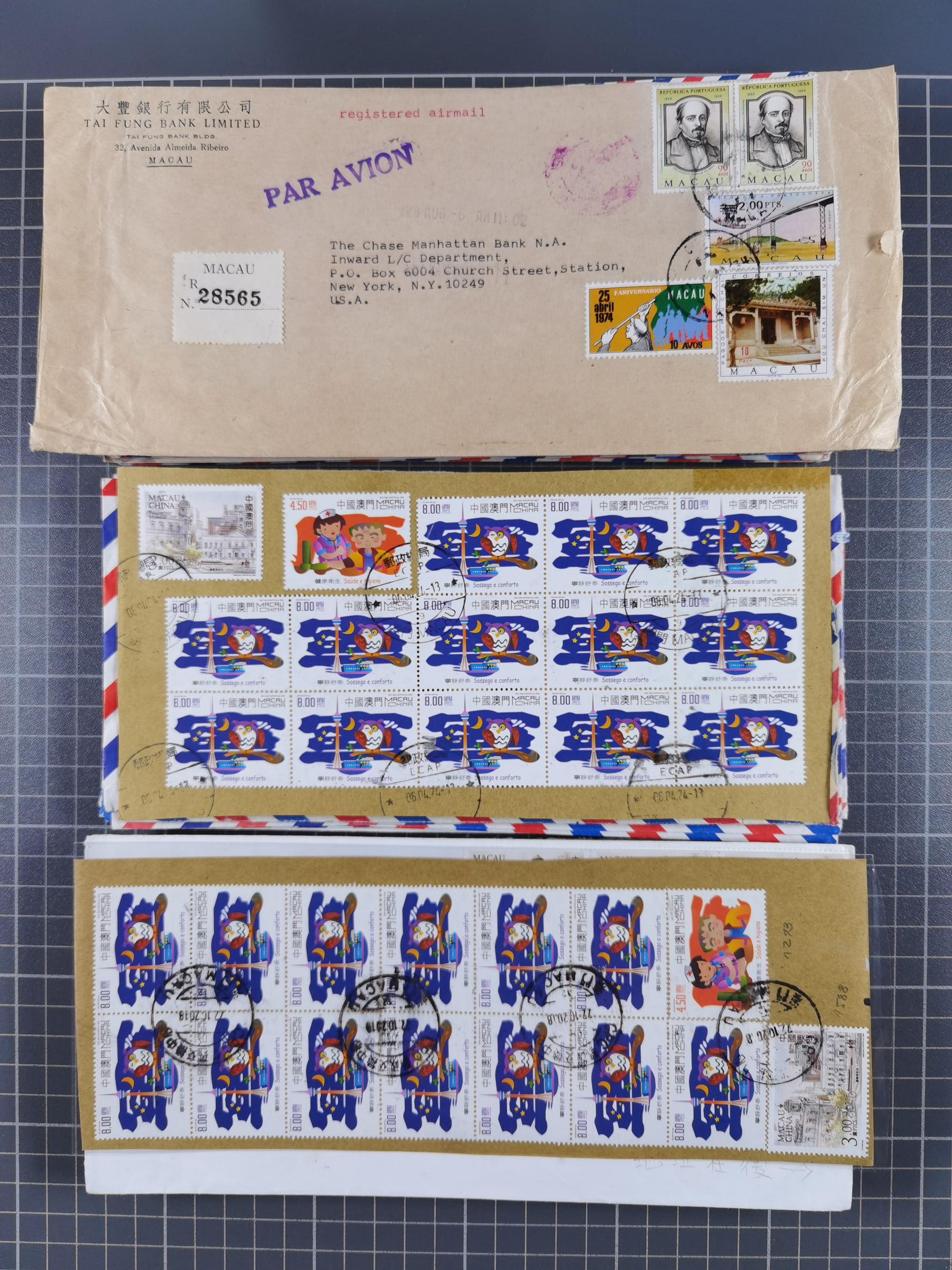 1937/2025 (ca.), Macau and taiwan accumulation of covers, noted a group of 1937 First Flights Macau-USA, etc., mostly in good condition