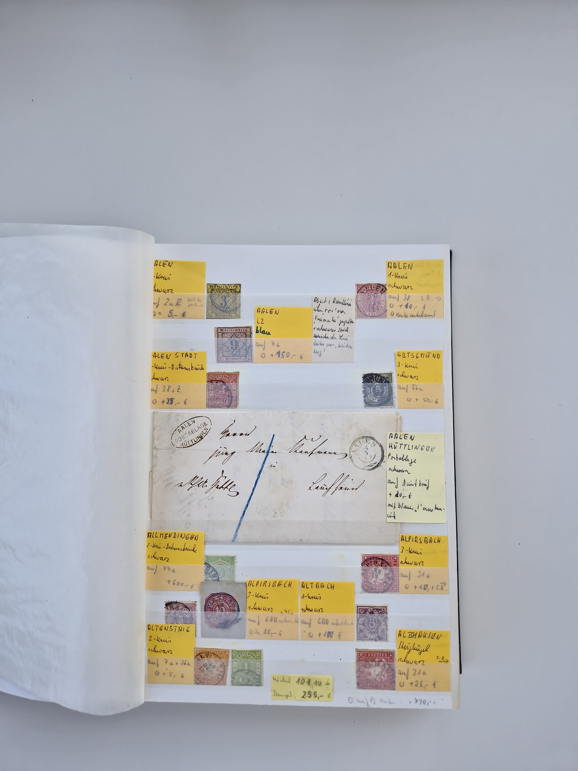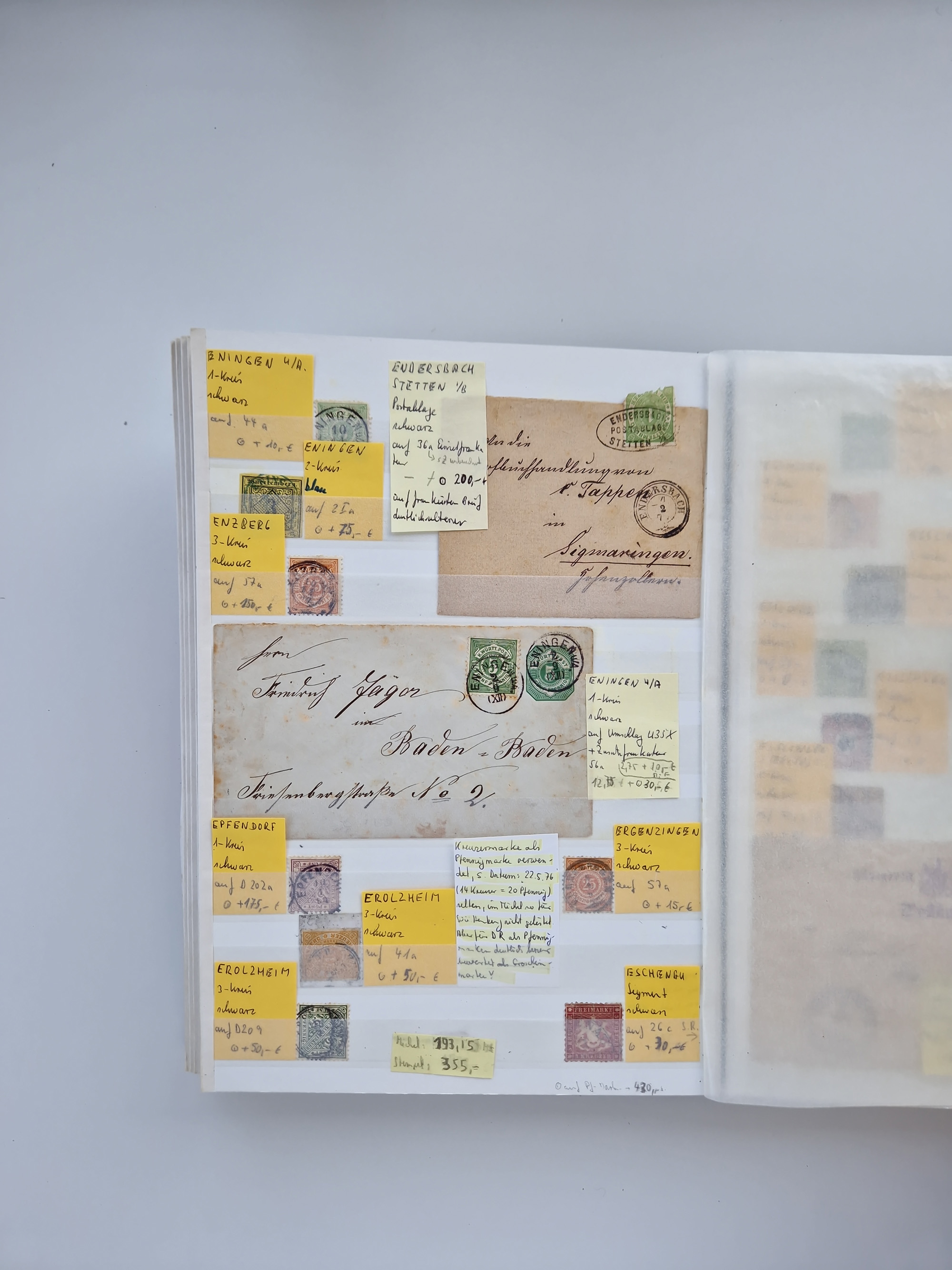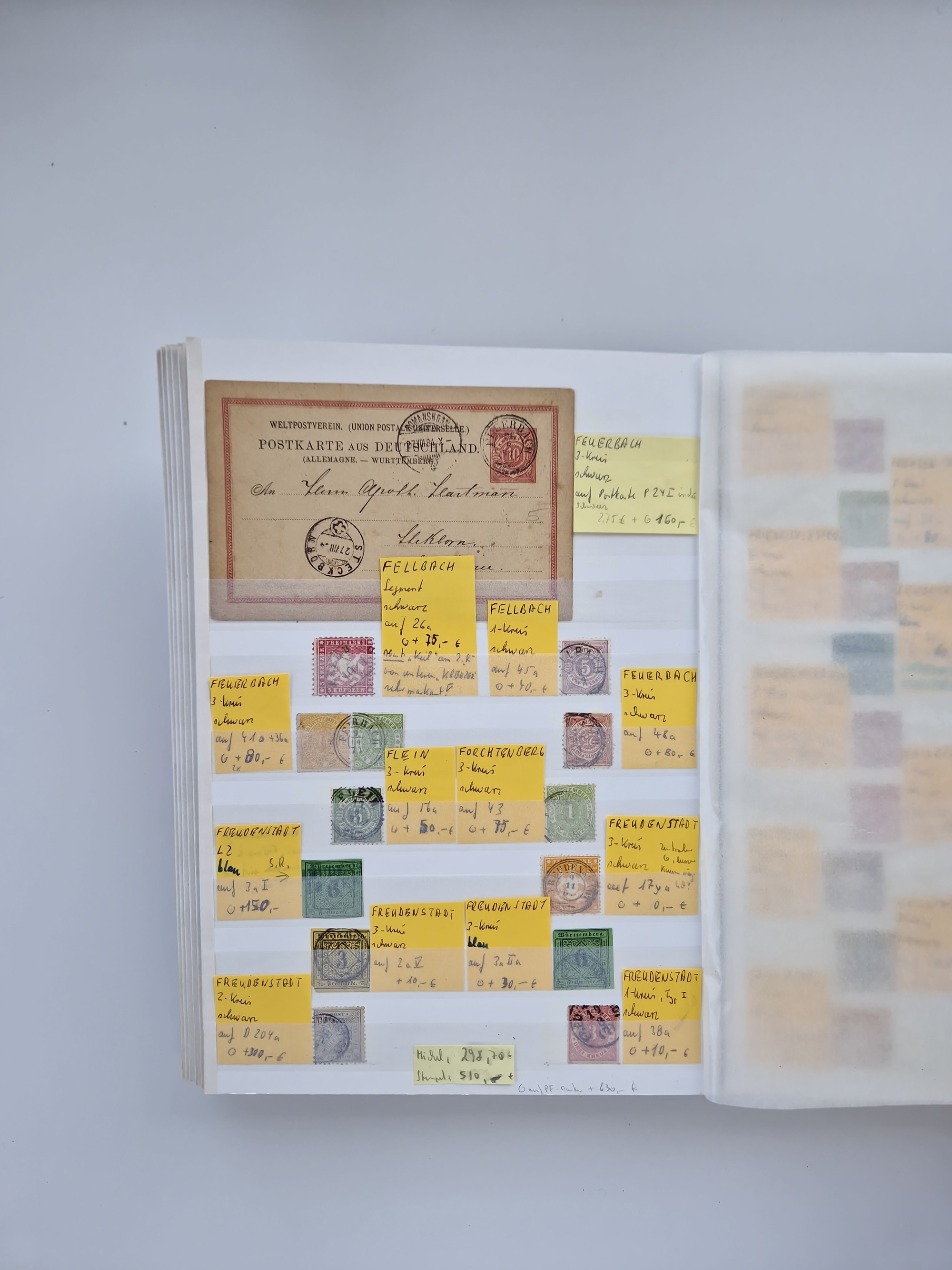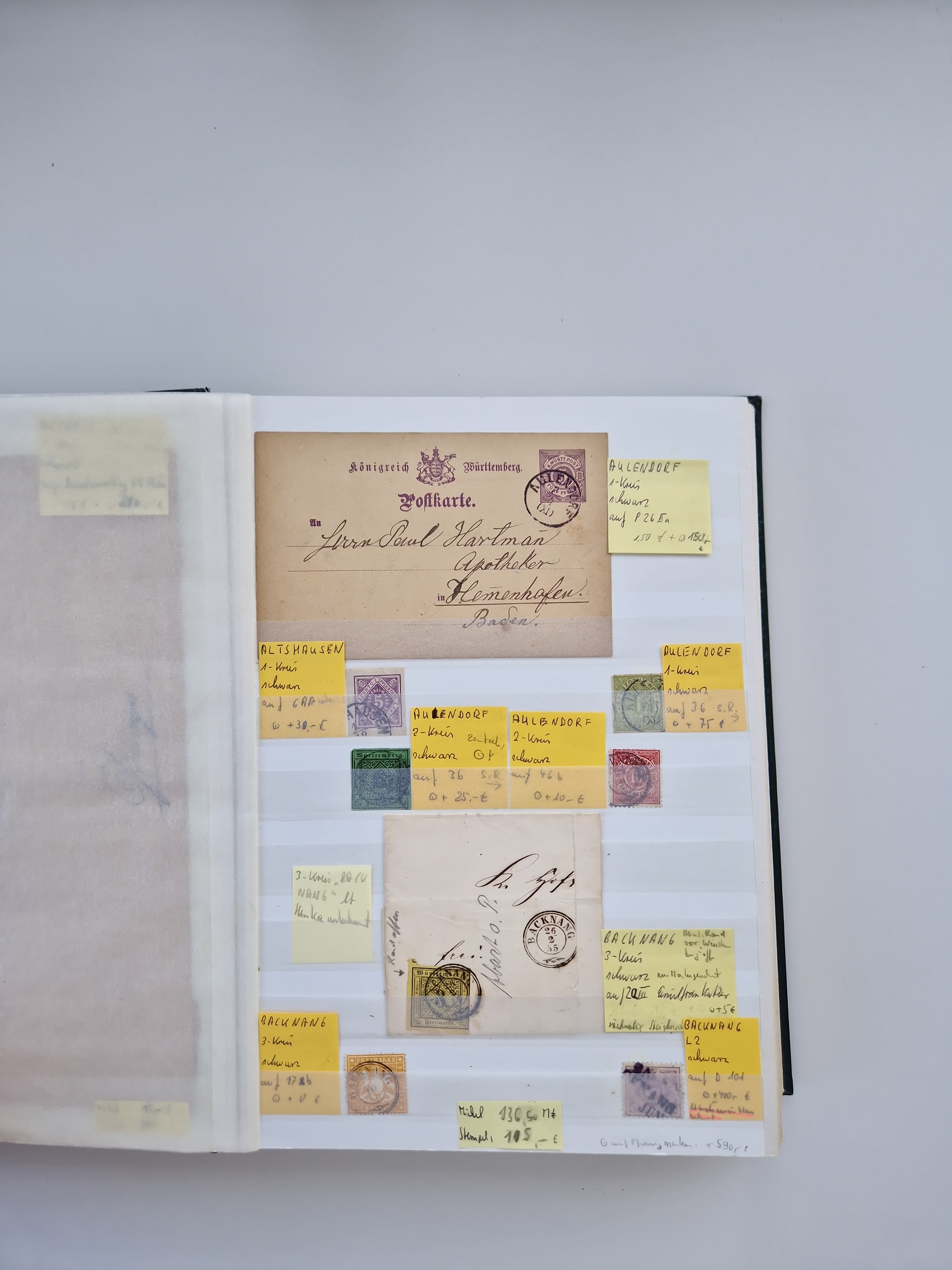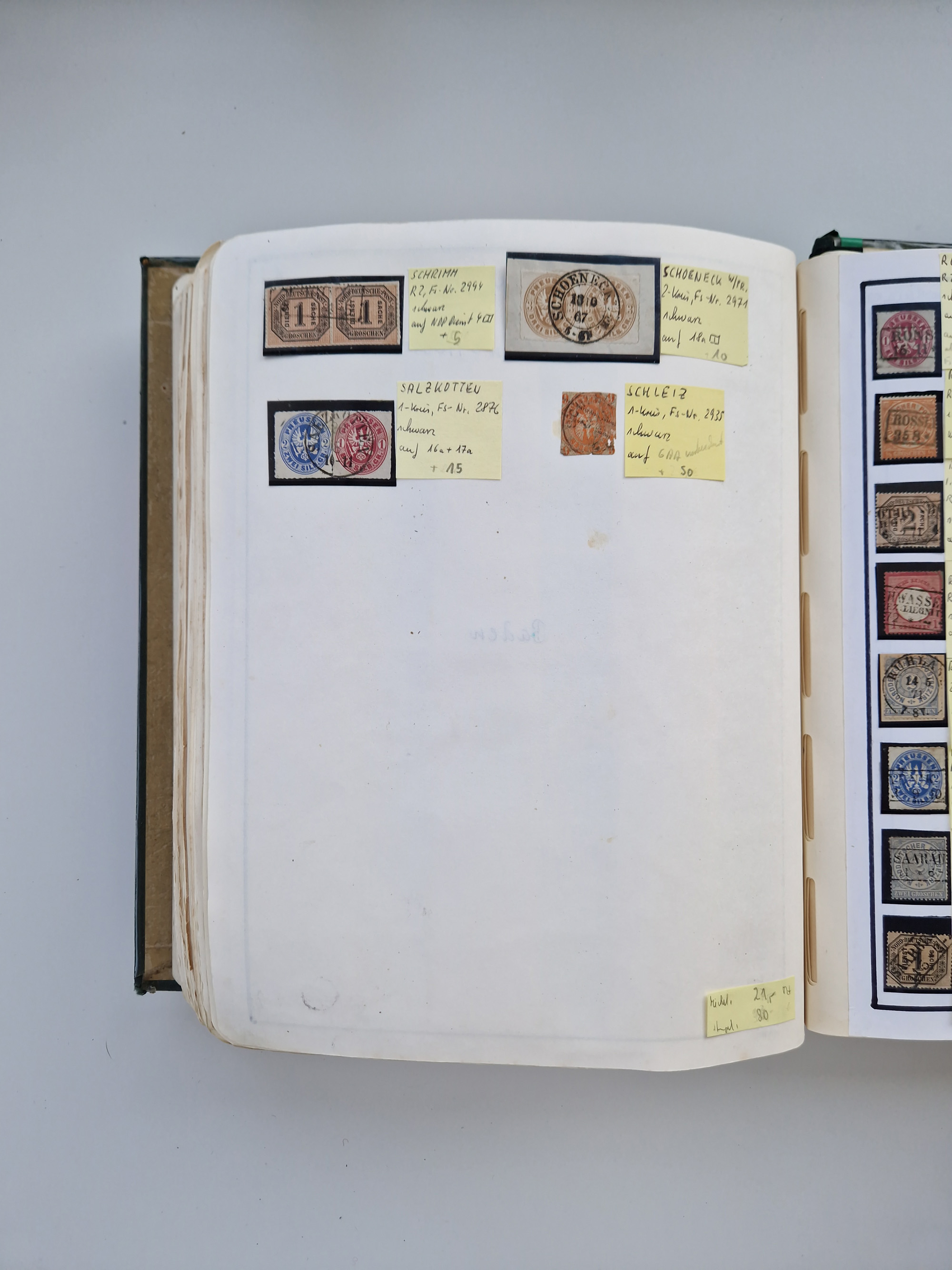BADEN BIS WÜRTTEMBERG, Stempelsammlung auf einigen tausend Marken und Briefstücken und ein paar Dutzend Belegen, dabei auch Nachverwendungen. Unterschiedliche Erhaltung mit viel brauchbarem Material. Interessante Partie in 5 Steckbüchern.