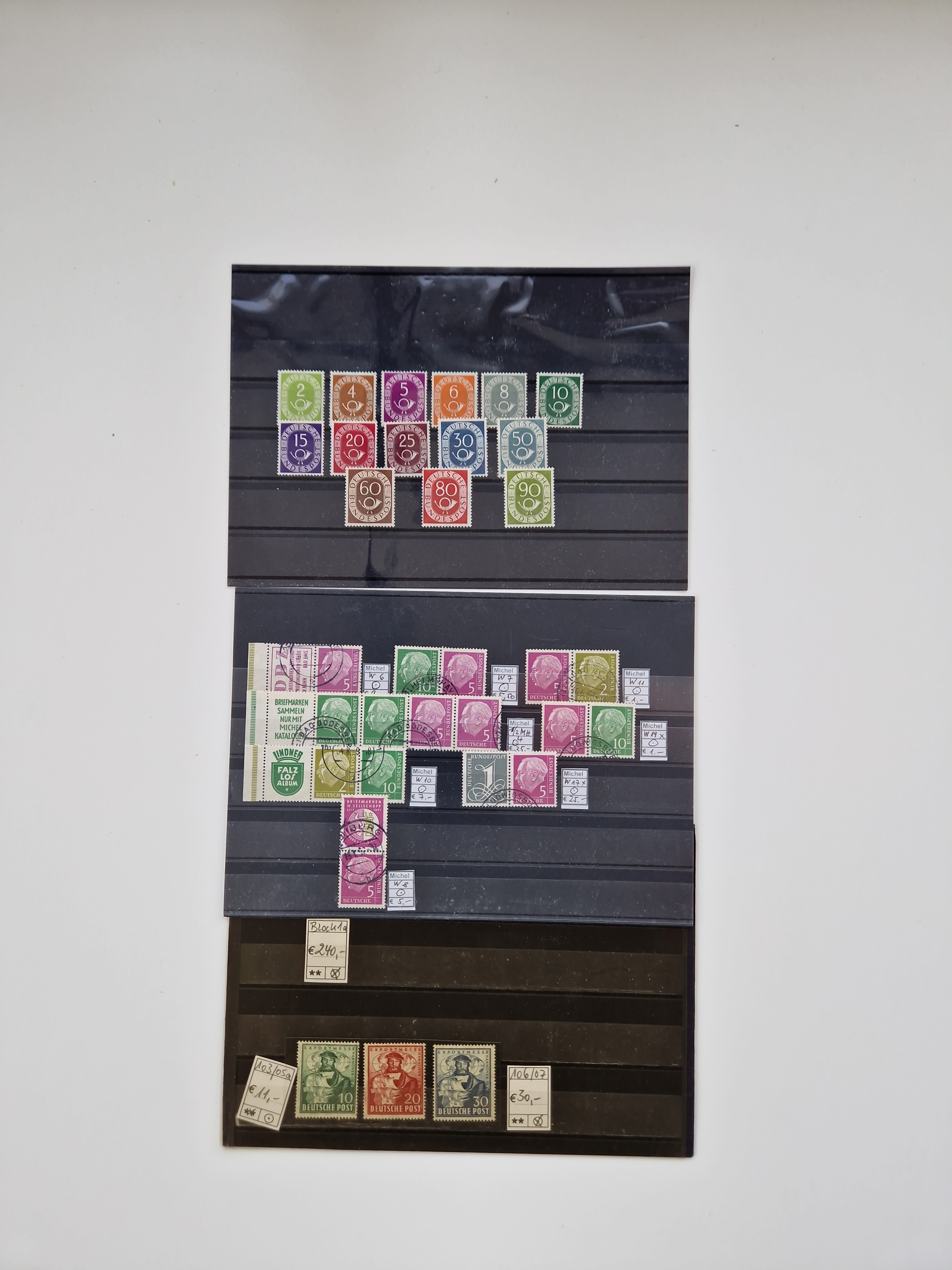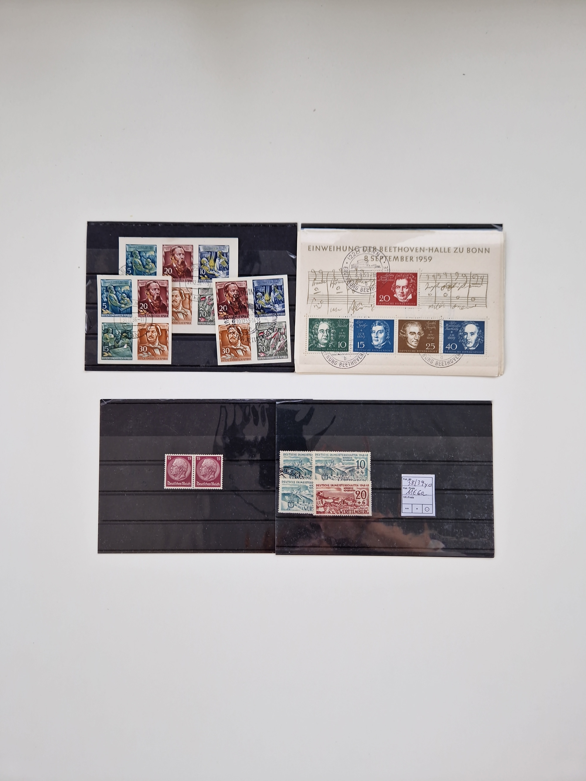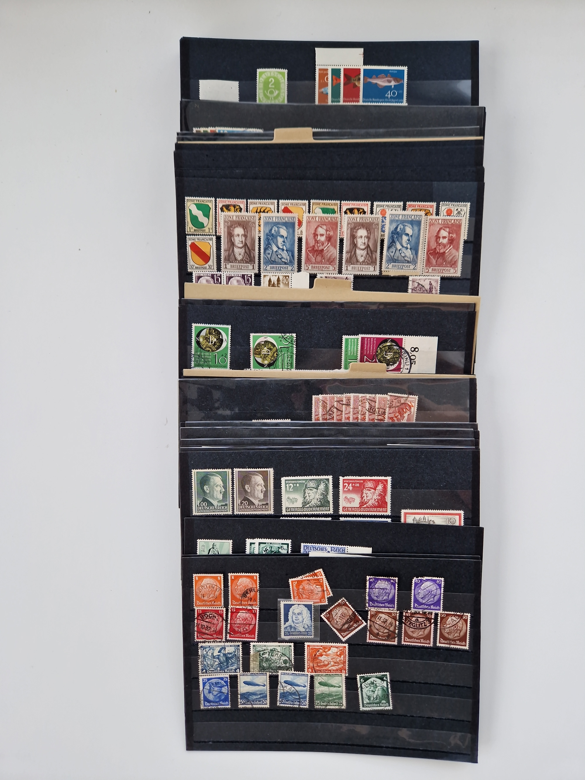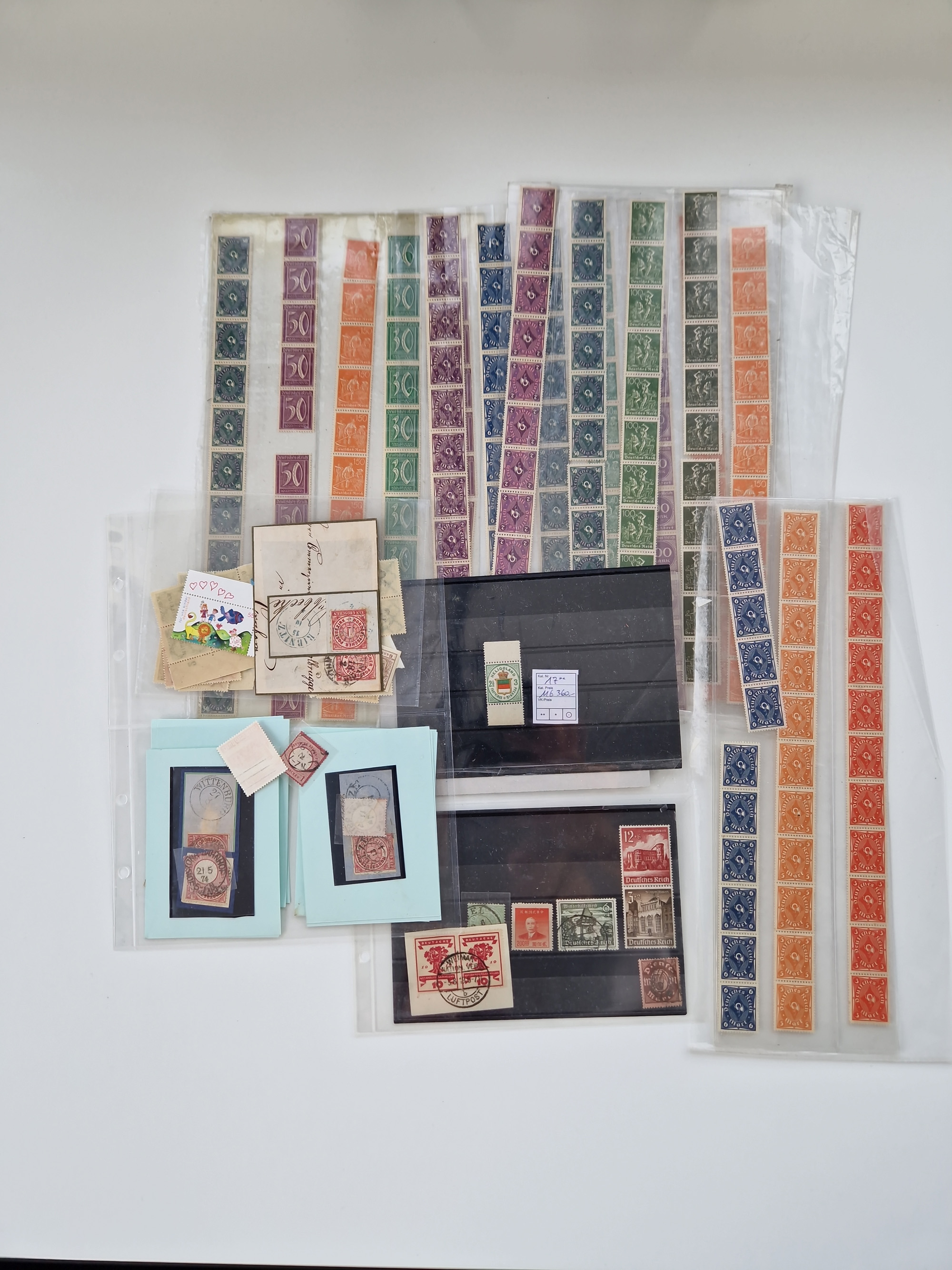 1860/2002 (ca.) interessanter Steckkarten- und Tütenposten mit Schwerpunkt Deutsches Reich ab Weimar mit besseren und kpl. Ausgaben und besonders nach 1945 mit Anfangsausgaben Bund mit u.a. postfrischem Posthornsatz und zweitem fast kpl. Satz mit 80 und 90 Pfg. sowie Berlin mit u.a. Mi.-Nr. 68-70 gestempelt (sign. Schlegel BPP)