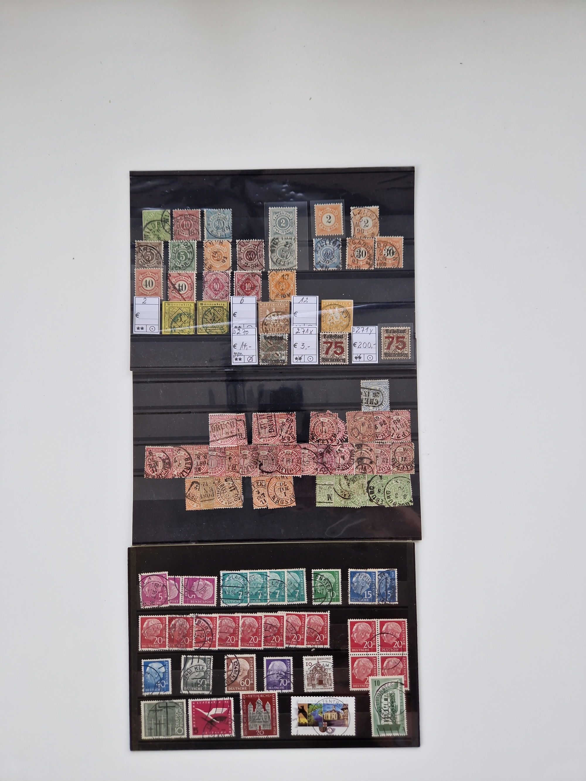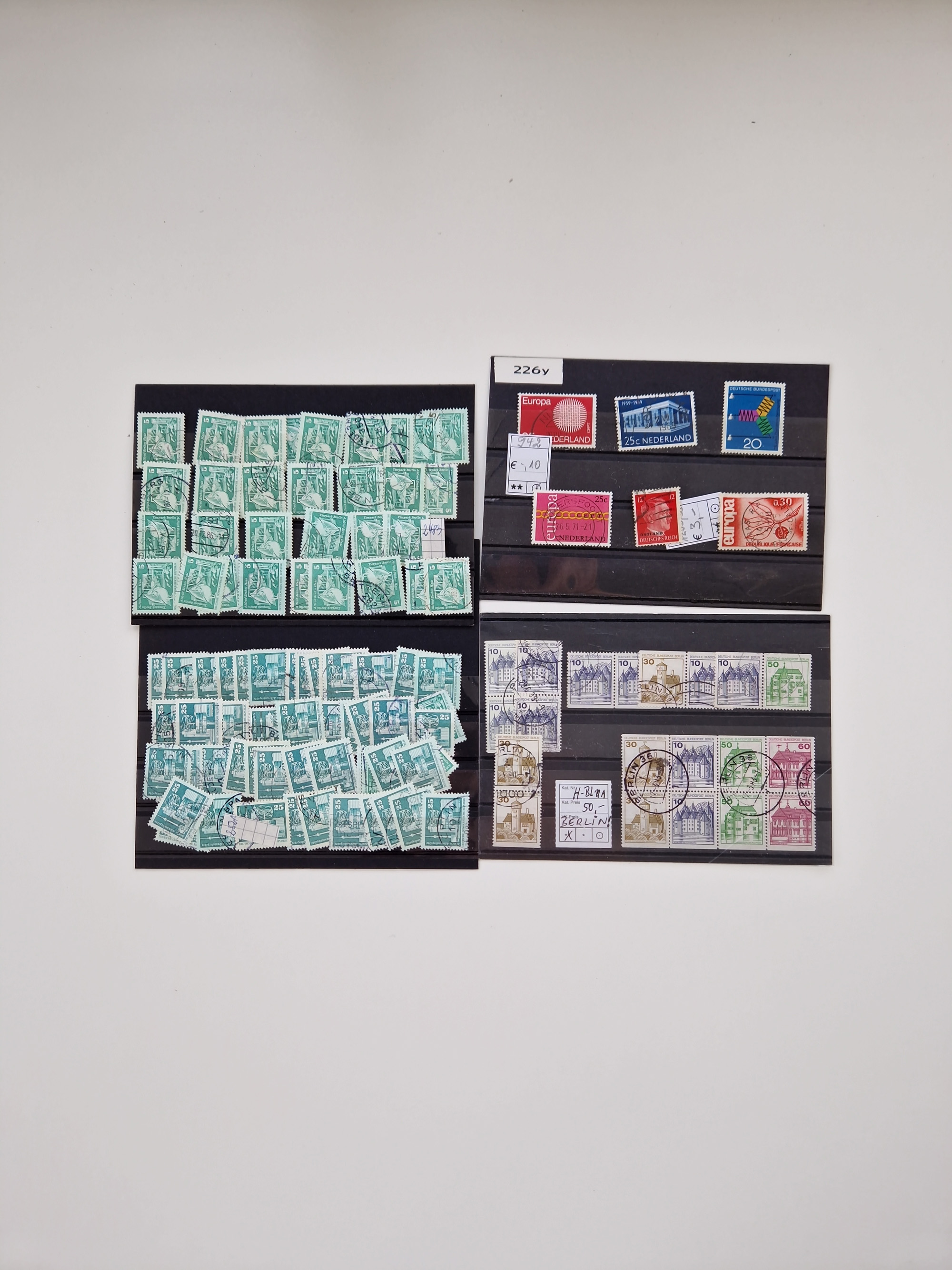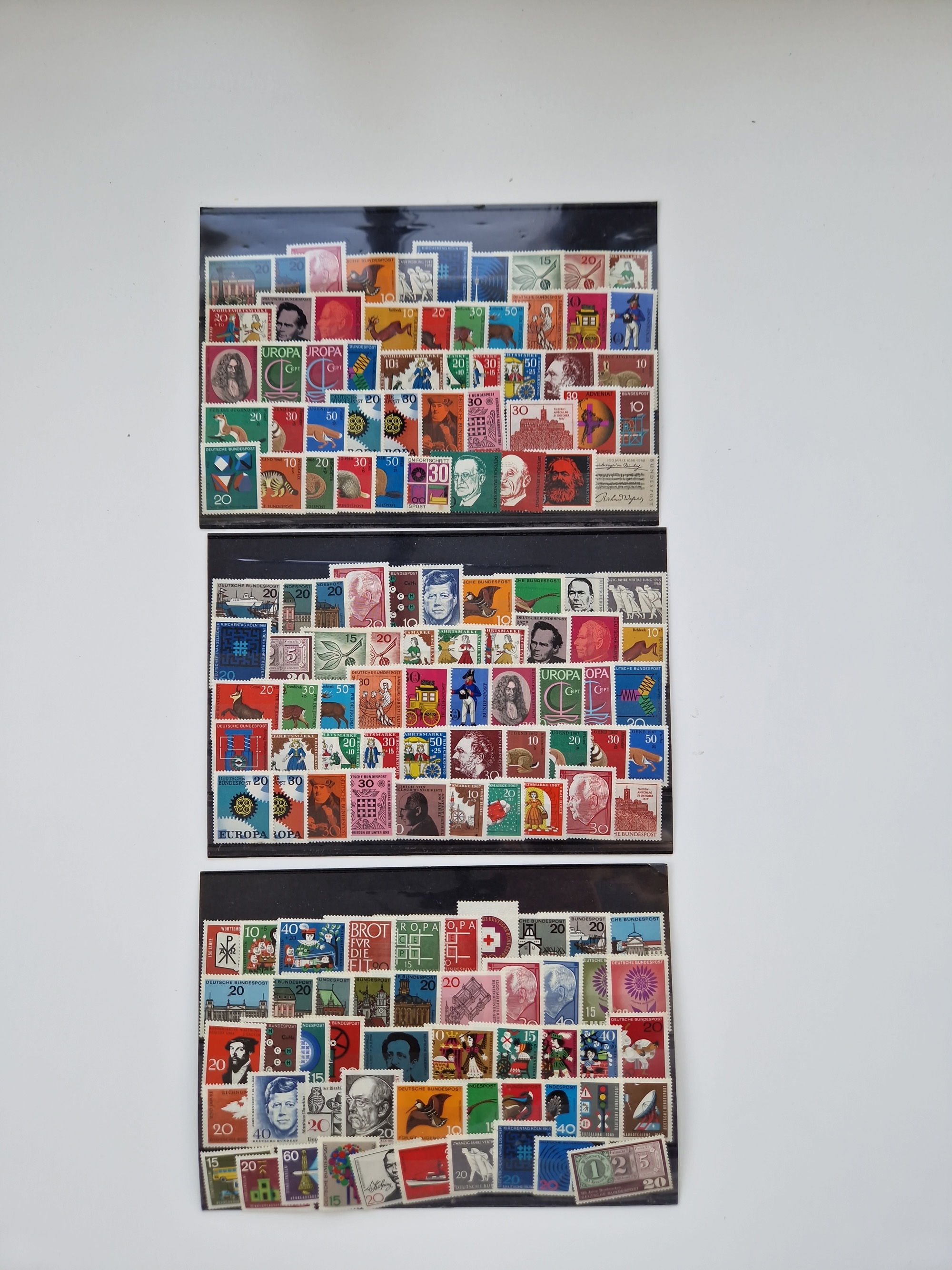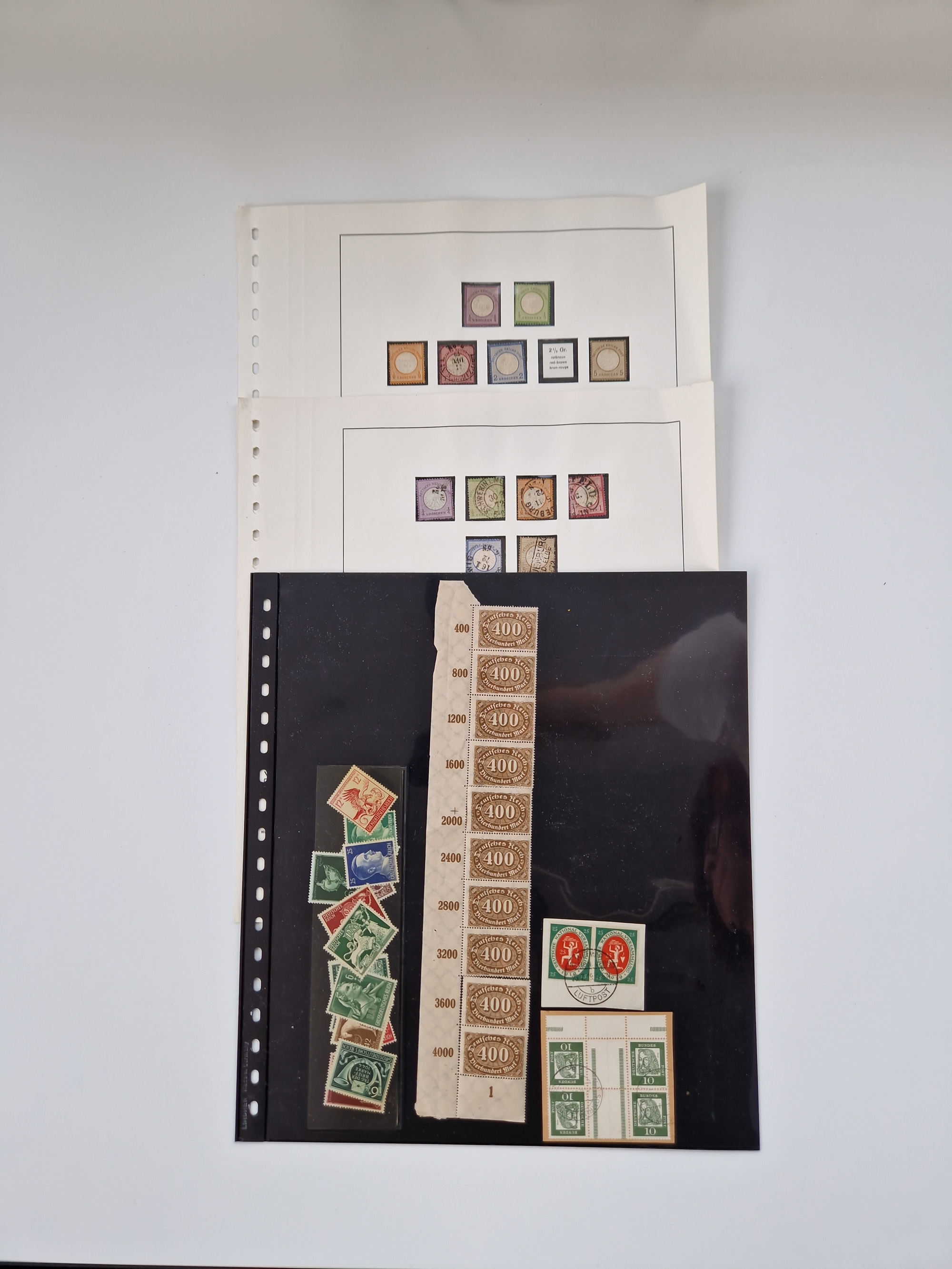 1860/2002 (ca.) interessanter Steckkarten- und Tütenposten mit Schwerpunkt Deutsches Reich ab Weimar mit besseren und kpl. Ausgaben und besonders nach 1945 mit Anfangsausgaben Bund mit u.a. postfrischem Posthornsatz und zweitem fast kpl. Satz mit 80 und 90 Pfg. sowie Berlin mit u.a. Mi.-Nr. 68-70 gestempelt (sign. Schlegel BPP)