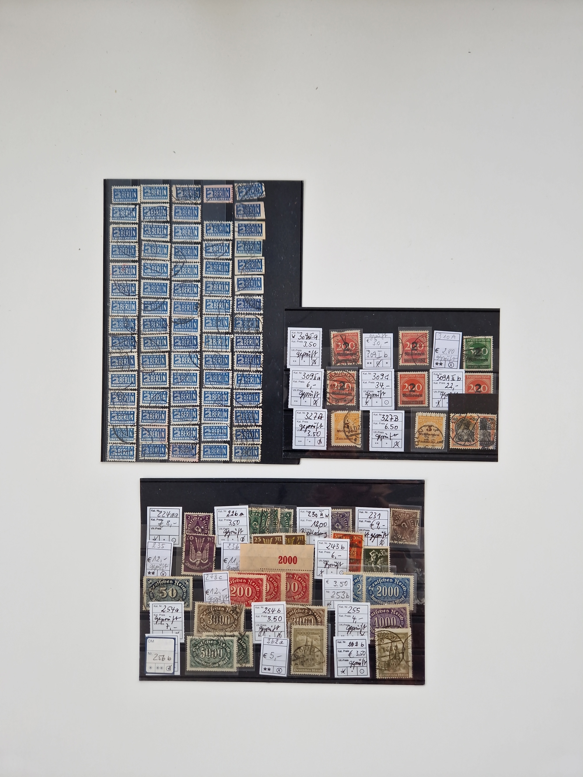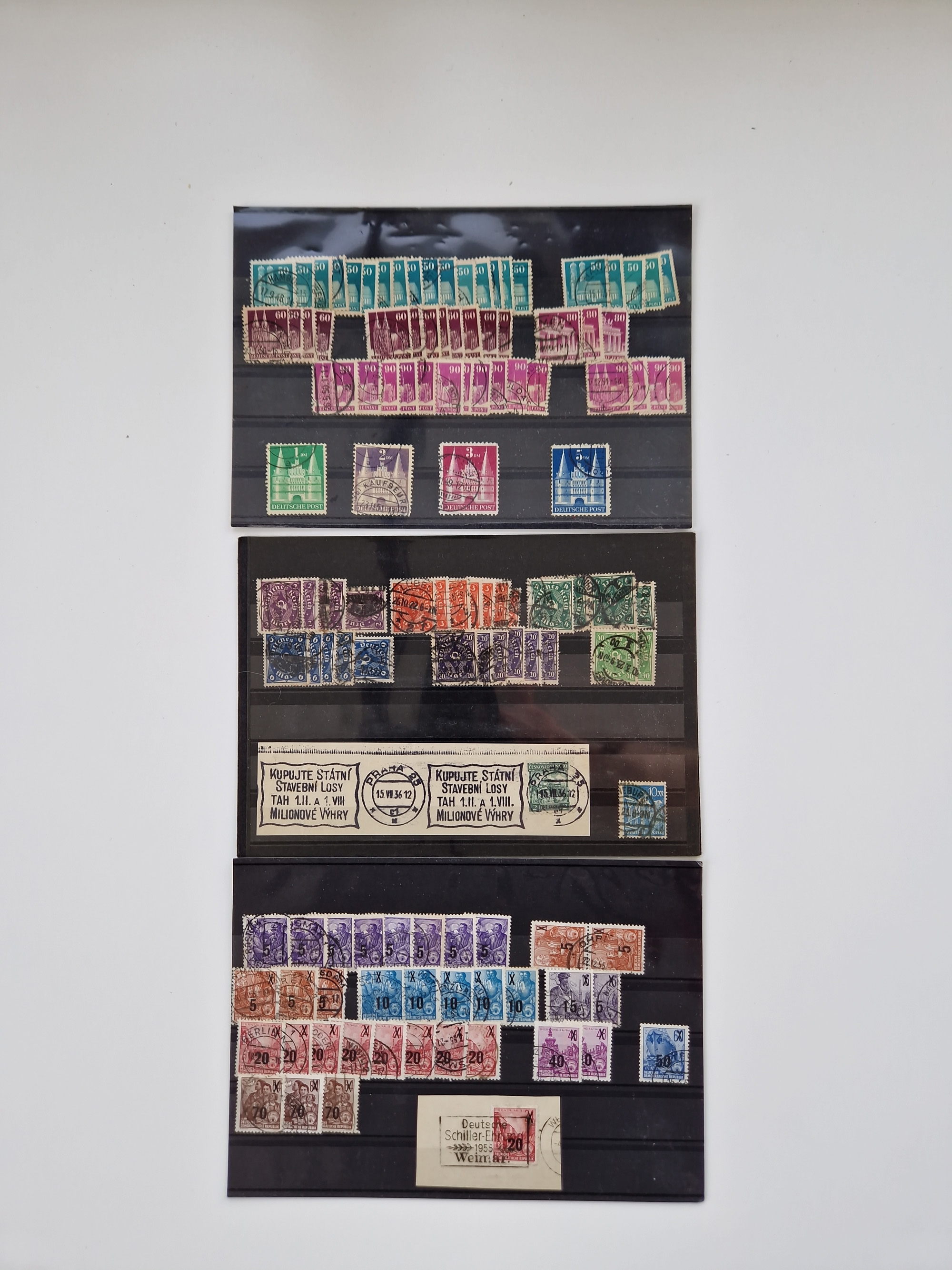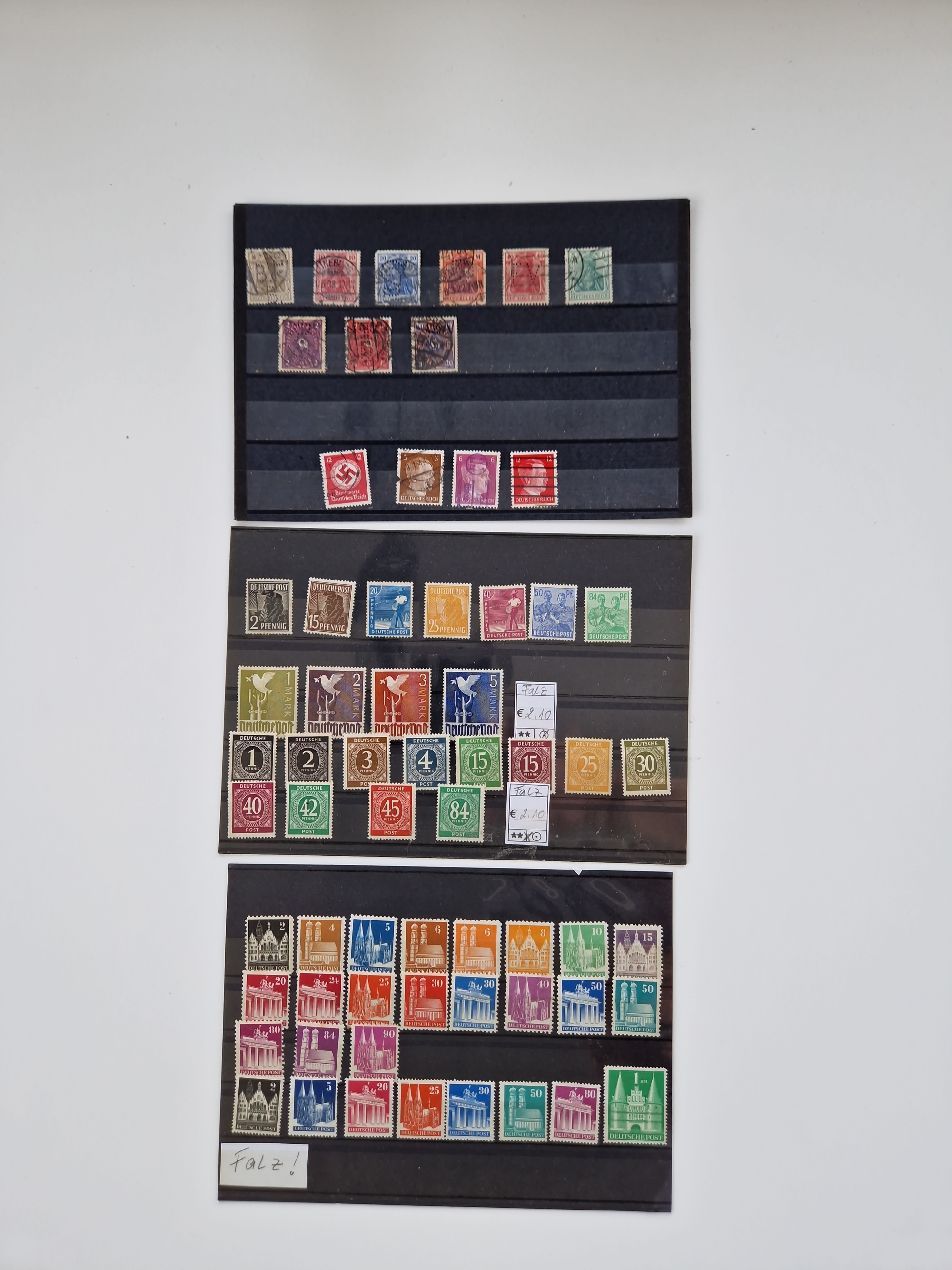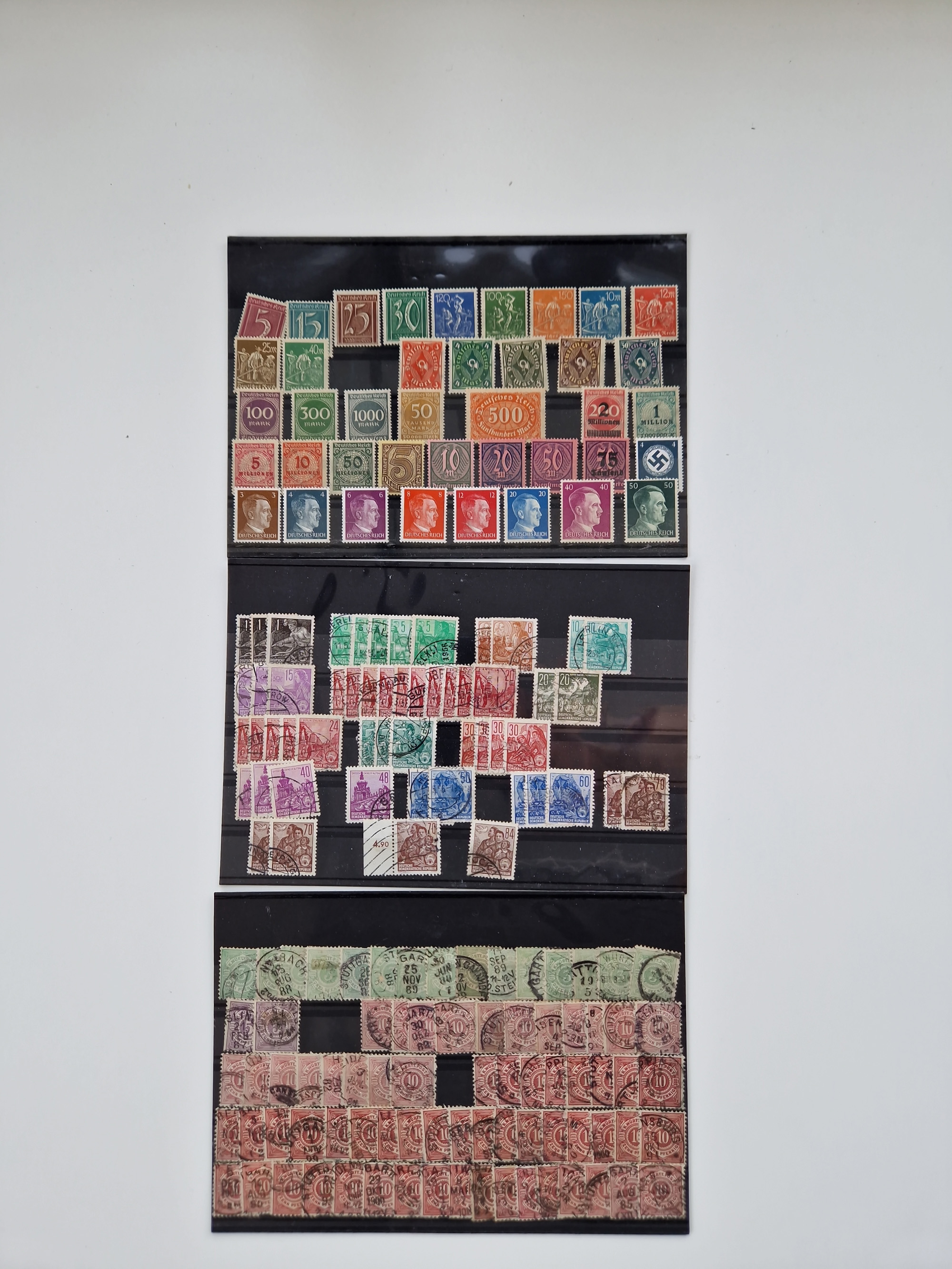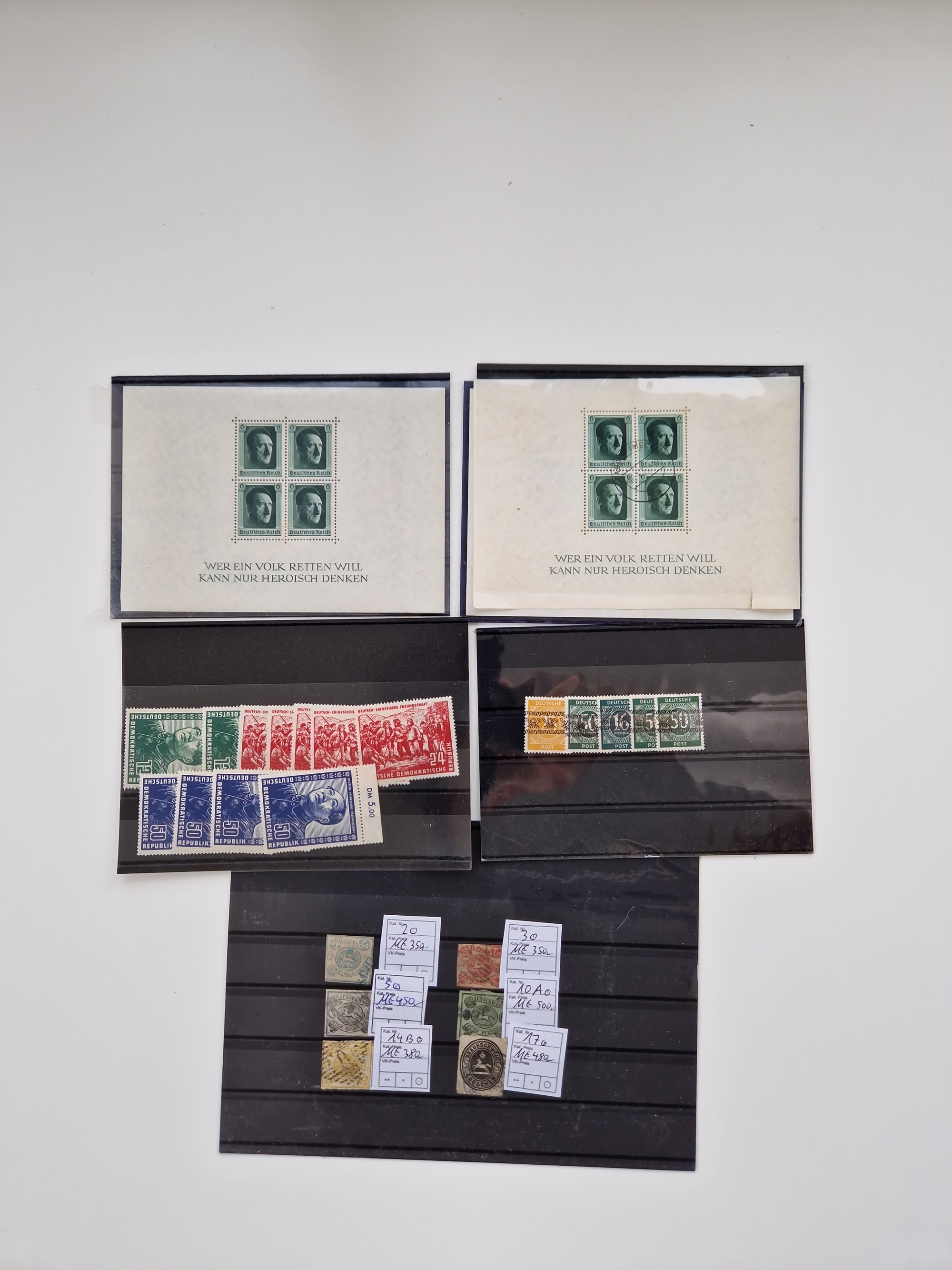 1860/2002 (ca.) interessanter Steckkarten- und Tütenposten mit Schwerpunkt Deutsches Reich ab Weimar mit besseren und kpl. Ausgaben und besonders nach 1945 mit Anfangsausgaben Bund mit u.a. postfrischem Posthornsatz und zweitem fast kpl. Satz mit 80 und 90 Pfg. sowie Berlin mit u.a. Mi.-Nr. 68-70 gestempelt (sign. Schlegel BPP)