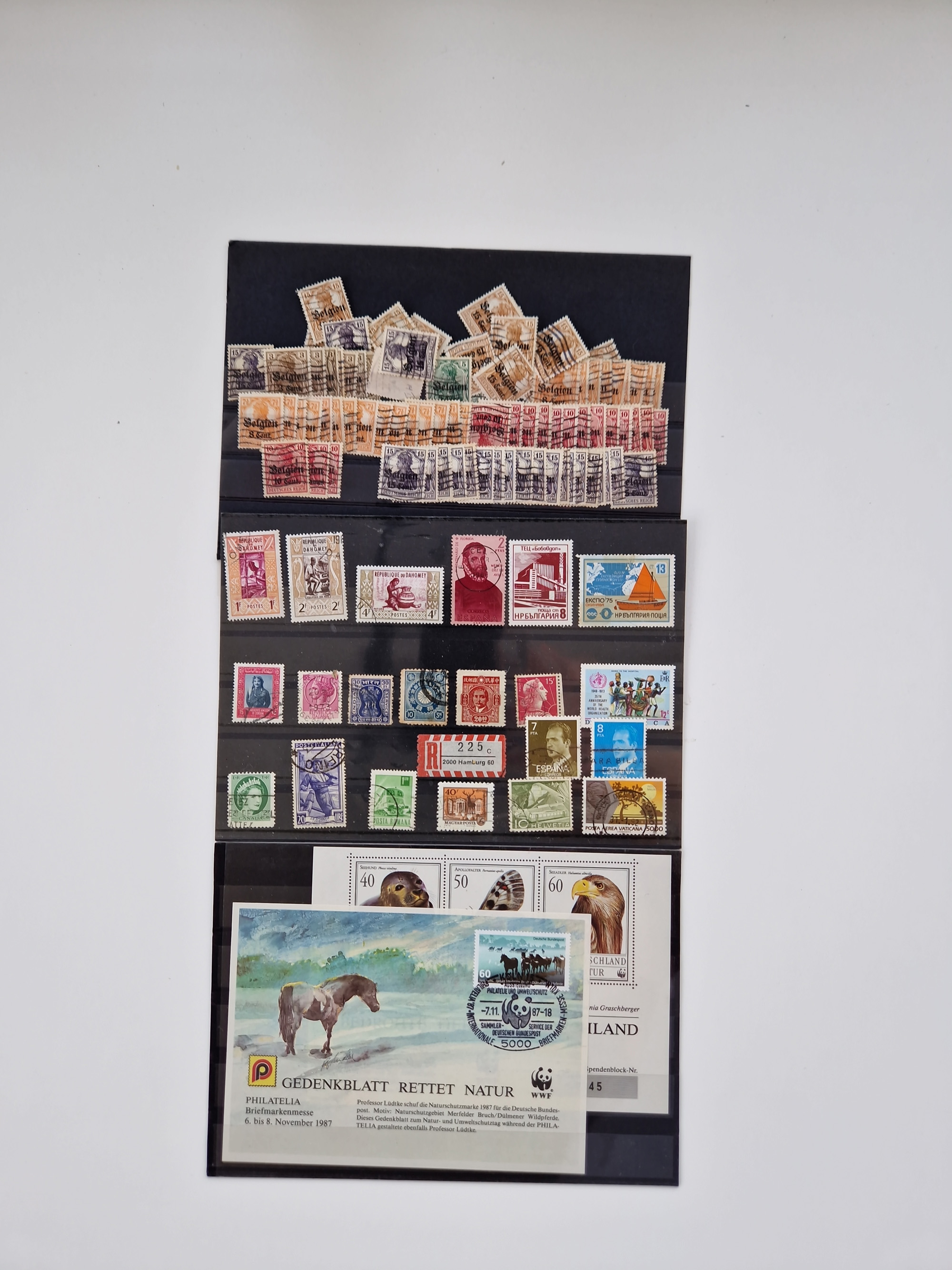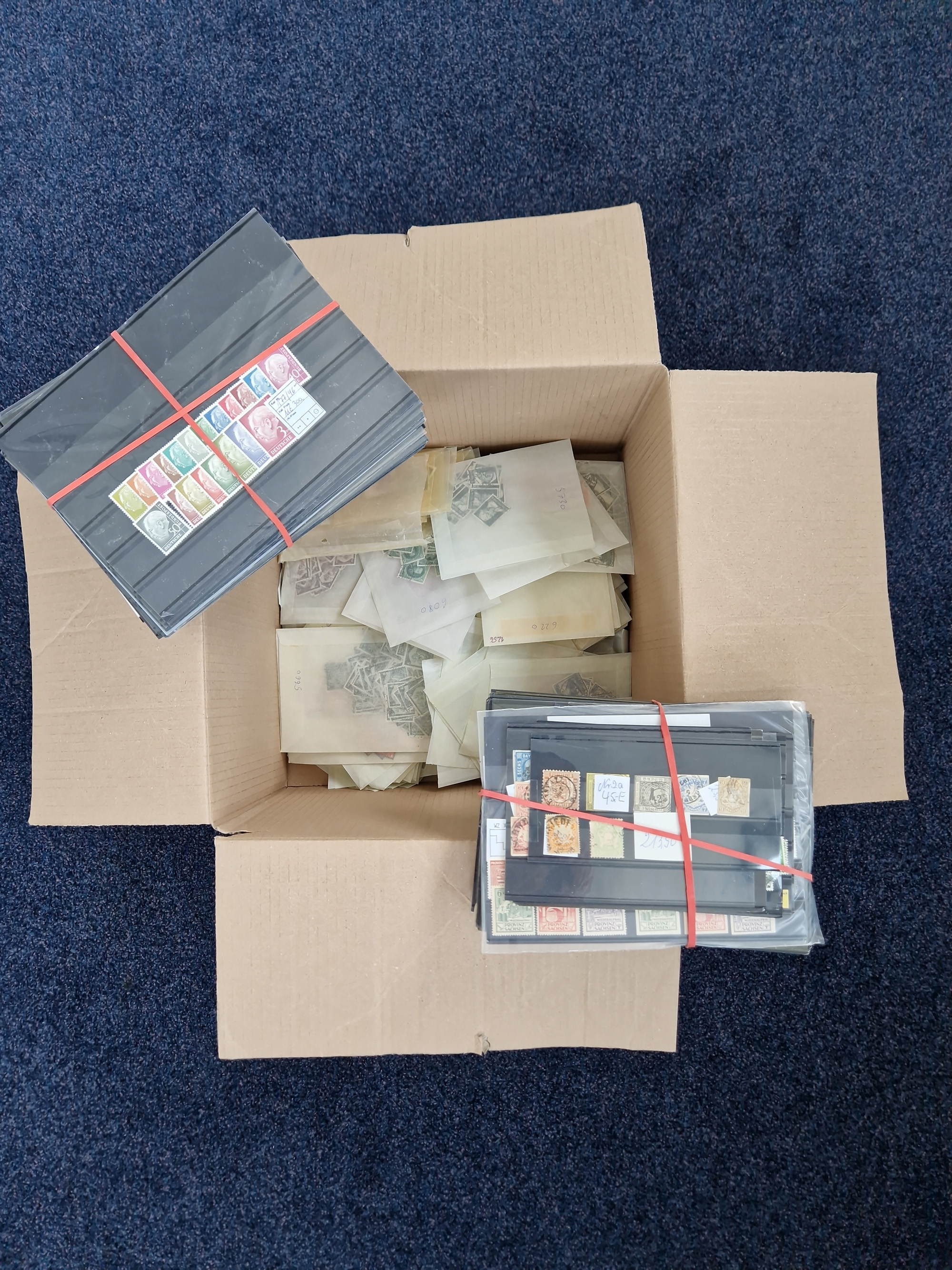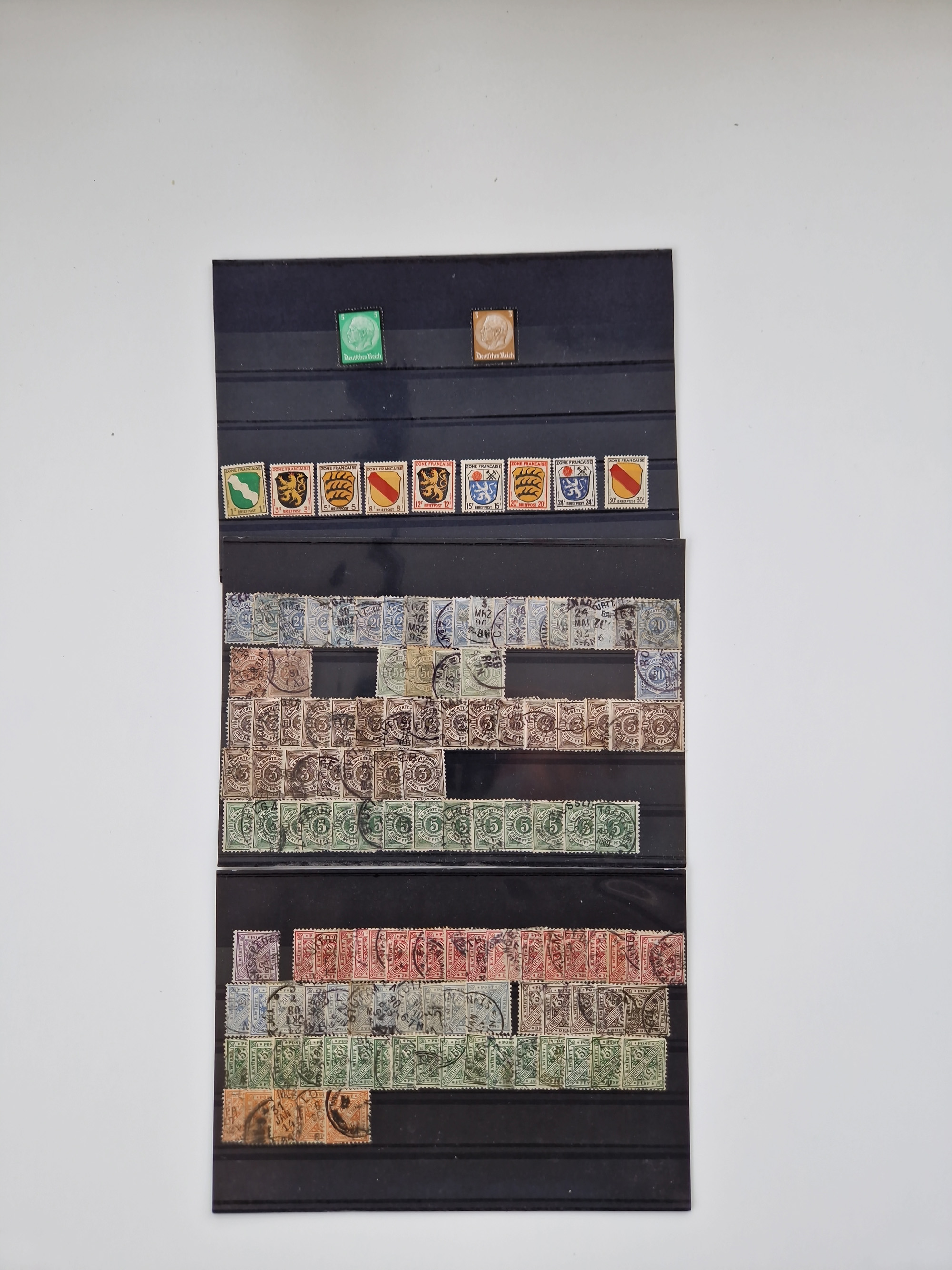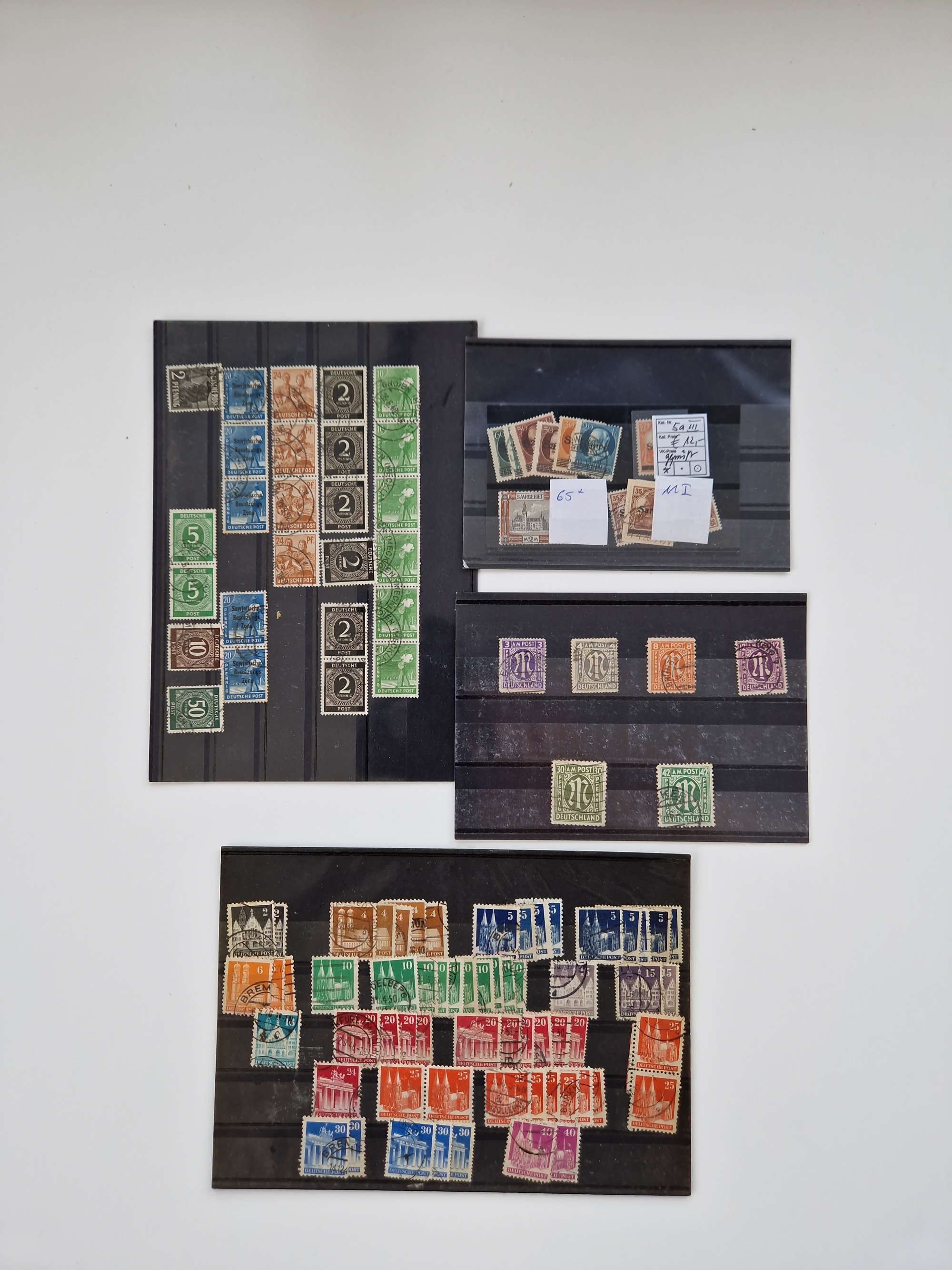 1860/2002 (ca.) interessanter Steckkarten- und Tütenposten mit Schwerpunkt Deutsches Reich ab Weimar mit besseren und kpl. Ausgaben und besonders nach 1945 mit Anfangsausgaben Bund mit u.a. postfrischem Posthornsatz und zweitem fast kpl. Satz mit 80 und 90 Pfg. sowie Berlin mit u.a. Mi.-Nr. 68-70 gestempelt (sign. Schlegel BPP)